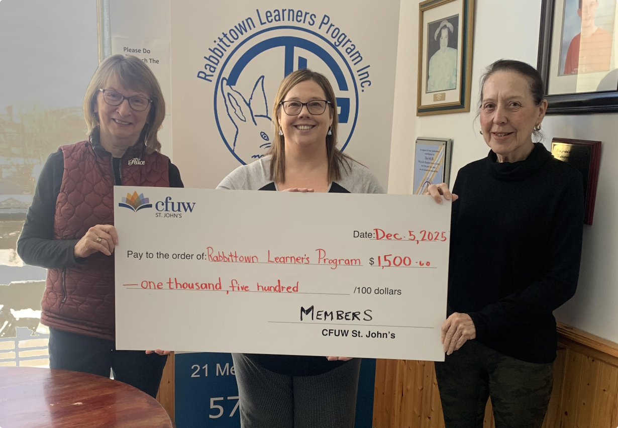 The Rabbittown Learners Program Inc. would like to extend our heartfelt thanks to the Canadian Federation of University Women for their generous donation of $1,500.00. Your support is deeply appreciated and will make a meaningful difference in the lives of our learners.